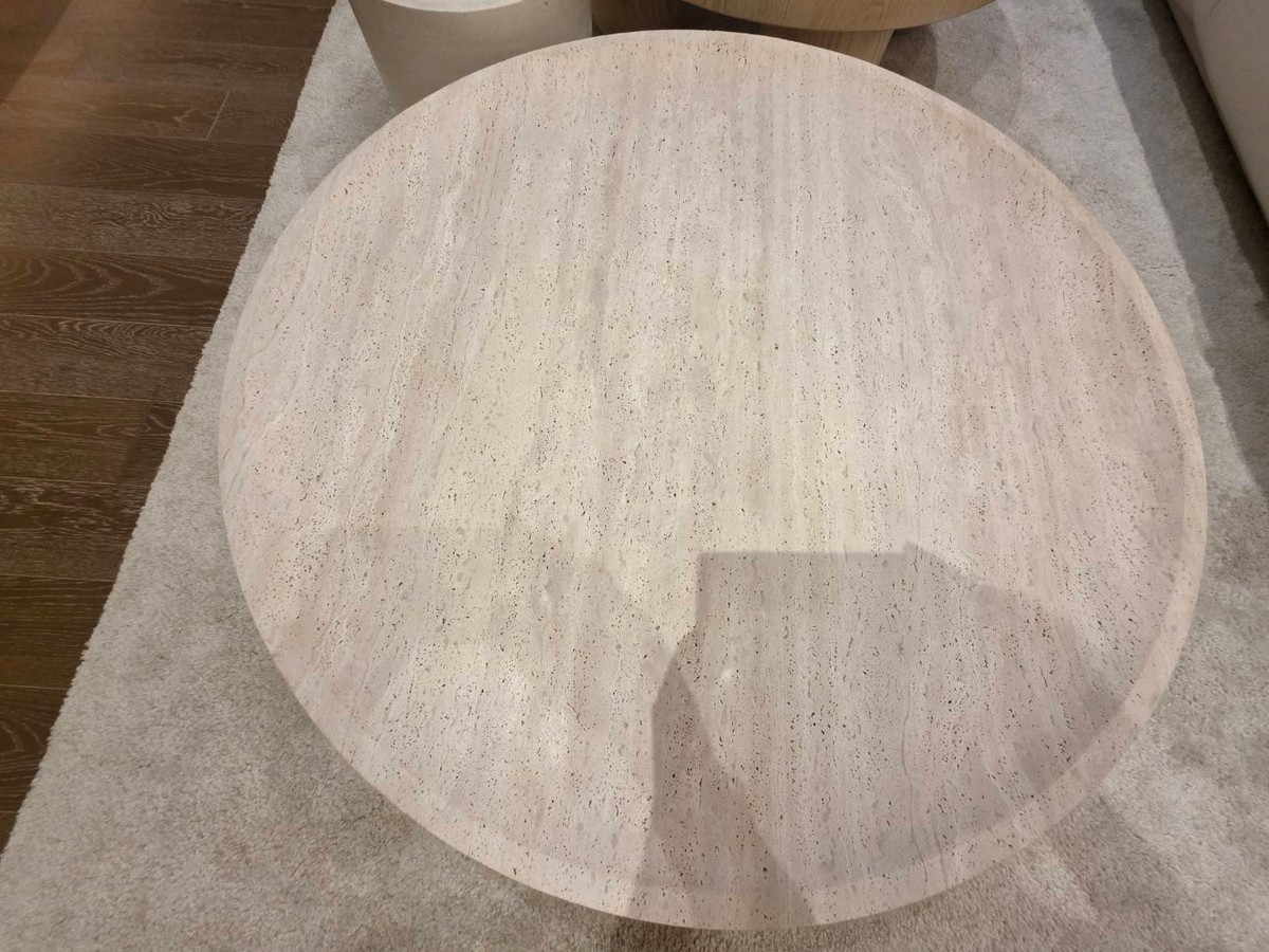 Travertine marbles, hand painted wall by the artist,